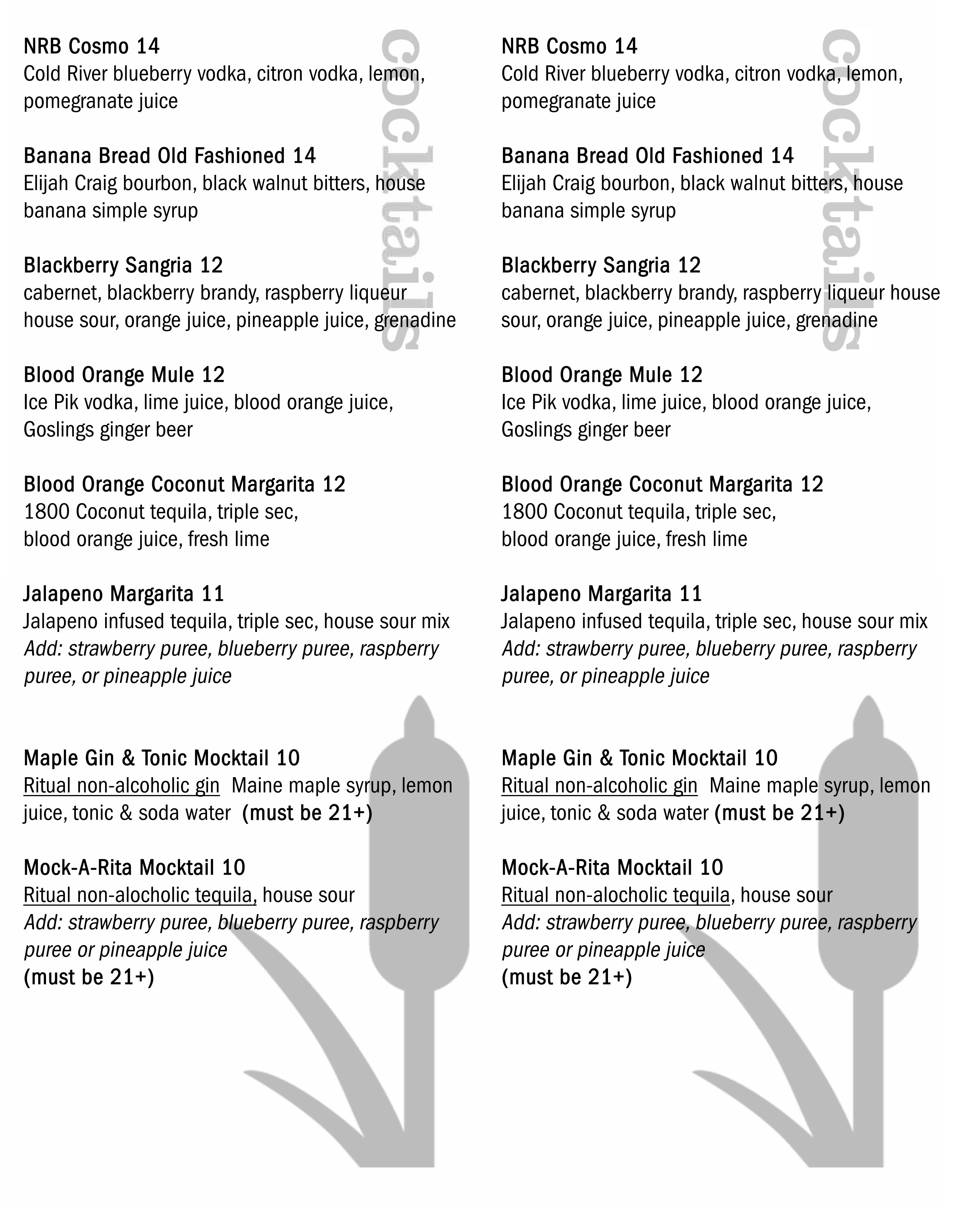 Cocktails menu